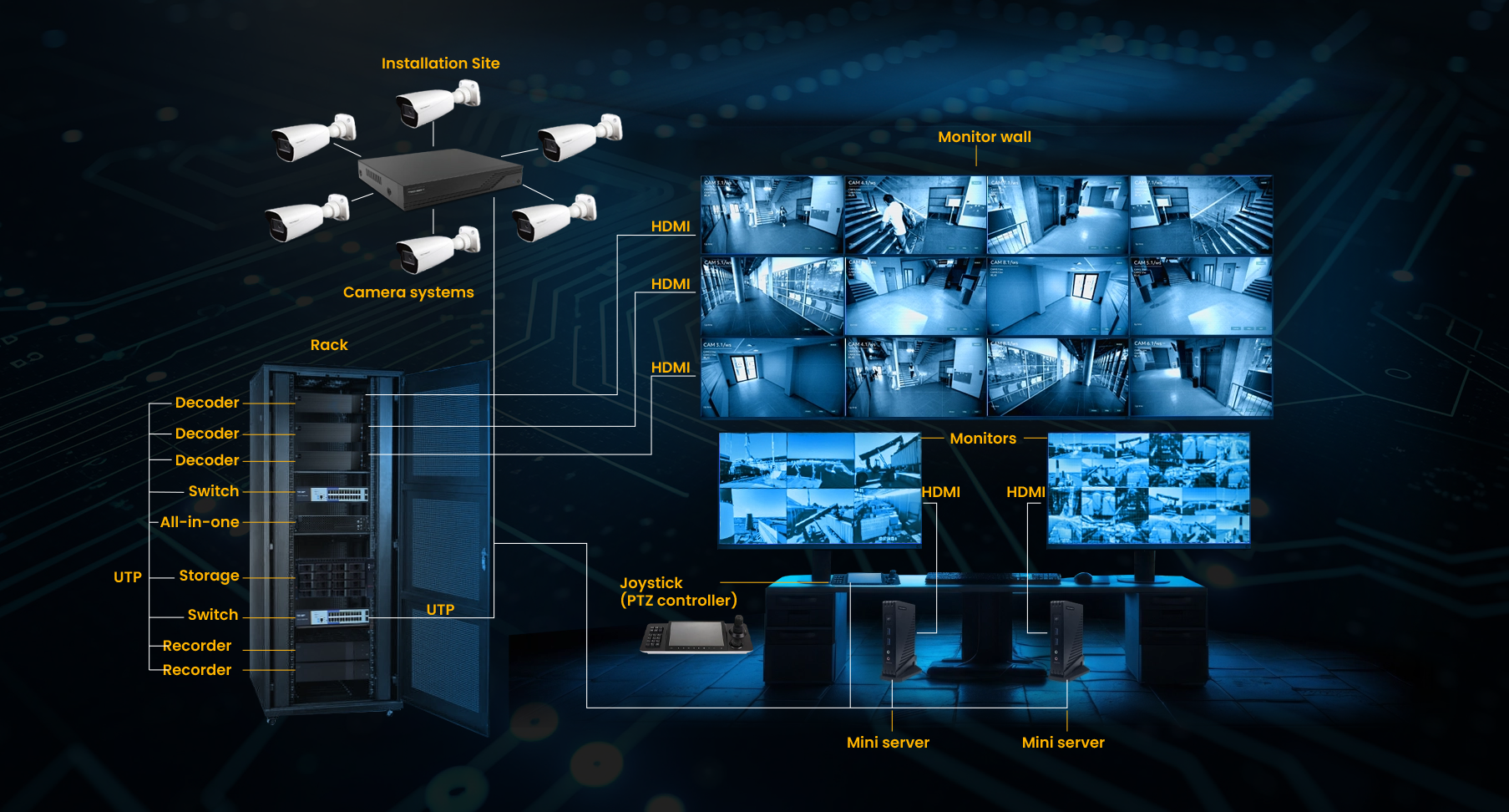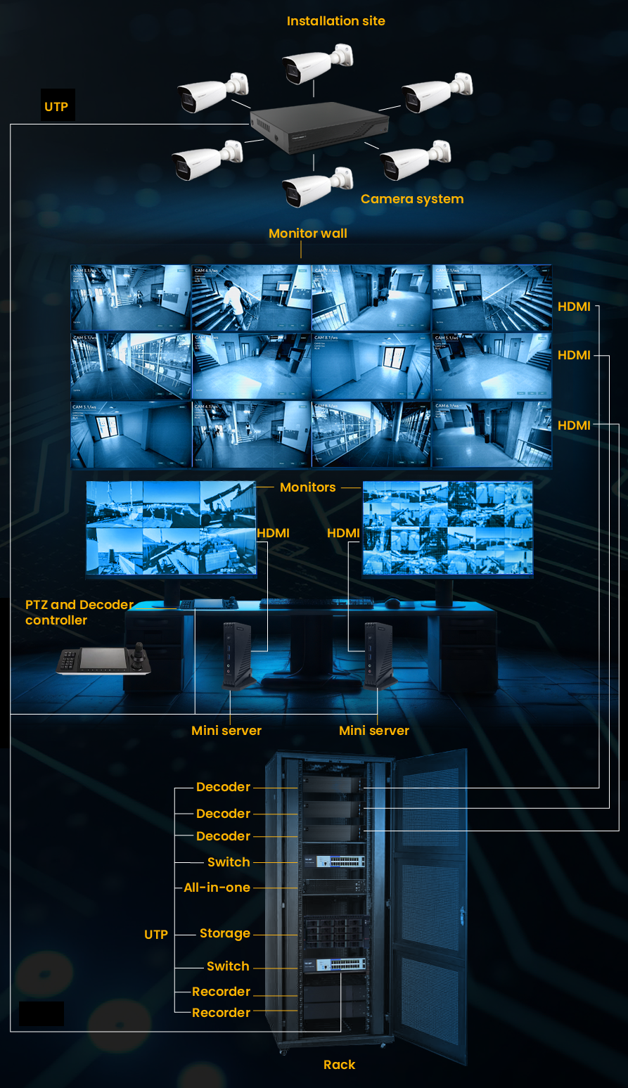 Surveillance systems with 30–40 cameras are still often operated in a decentralized manner, using individual NVRs with local access. For larger installations — such as city surveillance systems, industrial facilities, logistics hubs or shopping centers — centralized management is essential.