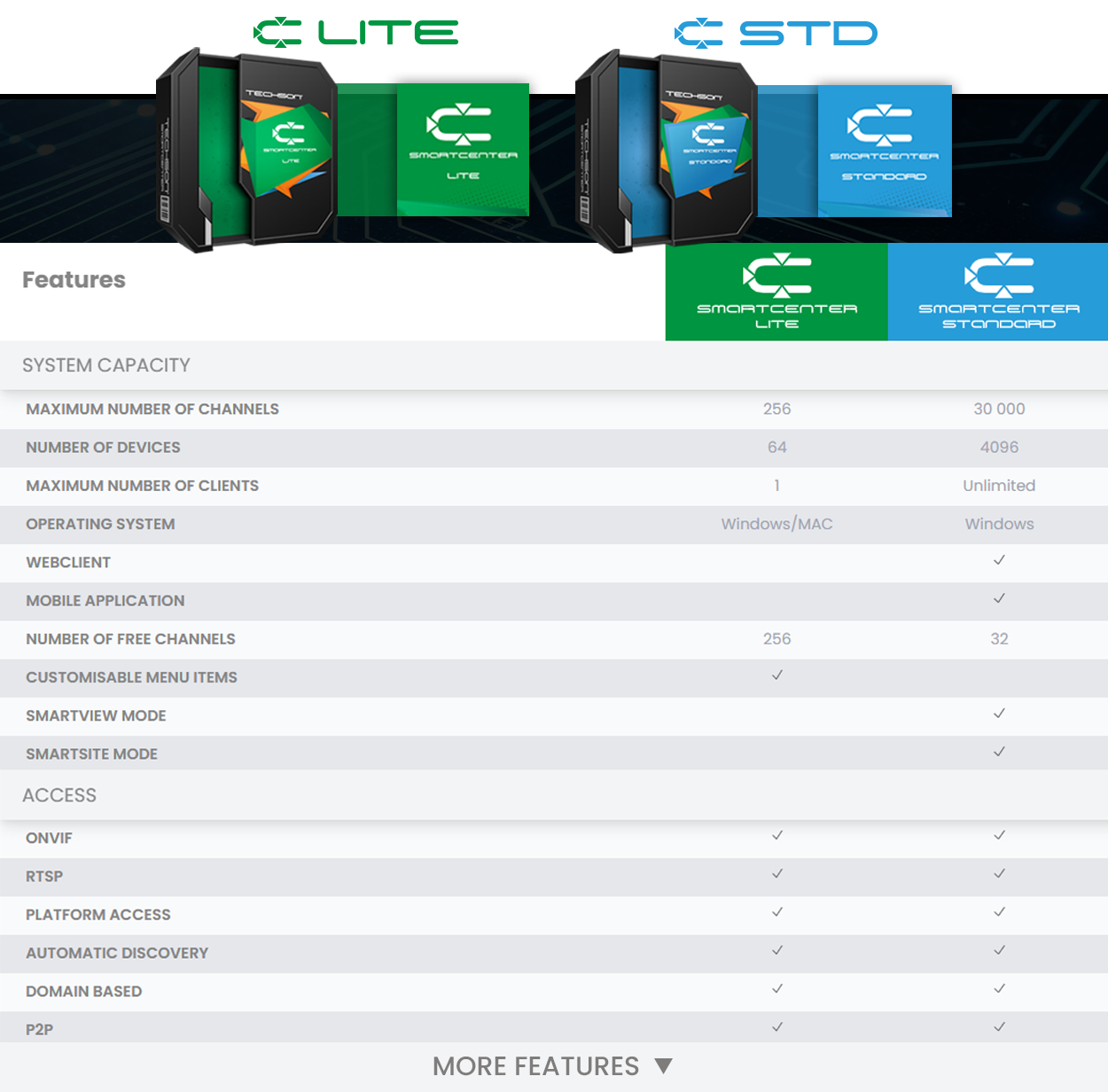 SmartCenter 2.1.2 and 2.1.3 are proven, well-structured systems that are ideal not only for small and medium-sized surveillance installations but also for environments operating thousands of cameras. With SmartCenter 2.1.4, however, Techson introduces a new-generation video management platform capable of handling up to 30,000 channels, while delivering advanced functions such as real-time face and license plate recognition, heat map–based people counting, intelligent parking management, a fully customizable live-data dashboard, and POS data integration.